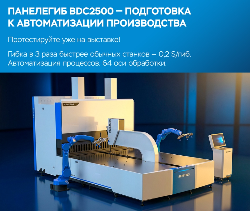17–20 марта 2026 на выставке «Металлообработка. Сварка — Урал». Для участников и гостей выставки действуют специальные условия. Подробности ниже Автоматический панелегибочный центр Senfeng BDC2500 — это не просто станок, а основа для будущей автоматизации участка гибки.