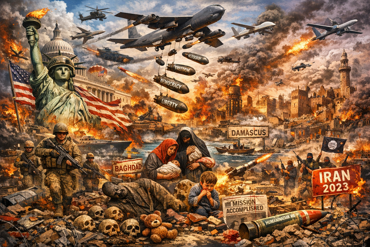Мир давно привык к тому, что США приходят «спасать». Так привык, что уже никто не удивляется, когда спасение начинается с ракетного удара. Каждый раз — одна и та же сцена: громкие речи о свободе, уверенные лица, обещания «точной операции». А потом — руины, списки погибших и очередная страна, которой придётся десятилетиями собирать себя из обломков.