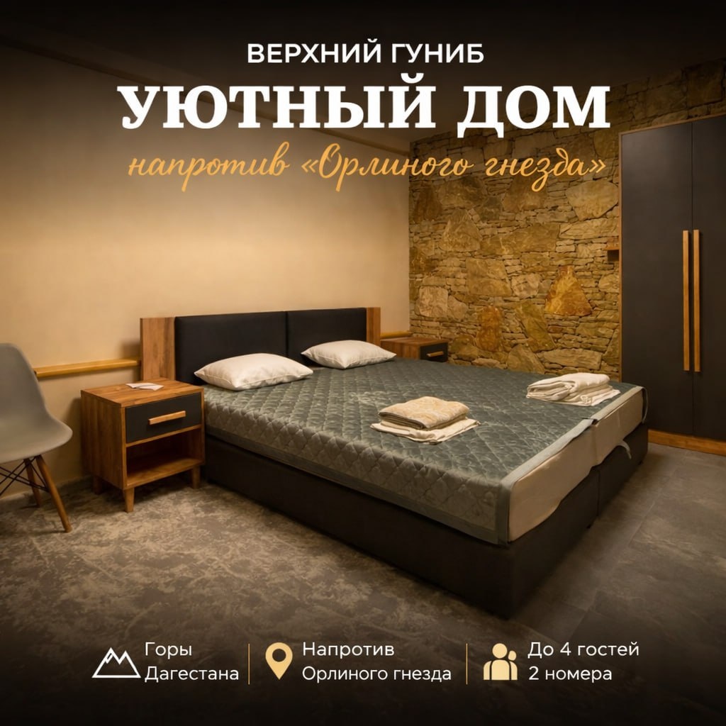 (напротив смотровой площадки «Орлиное гнездо») рядом с природными терренкурами Гунибского заповедника. 📍 Локация: Верхний Гуниб 🌿 чистый горный воздух, тишина и красивые виды 🏡 В доме: 🛏 2 номера • просторные спальни с двуспальными кроватями • шкафы для вещей • прикроватные тумбы 🚿 санузел и душ 🪑 зона со столиком и стульями 🌄 спокойная горная атмосфера 👥 Подходит для: 🎨 художников и творческих выездов 🎶 музыкантов и камерных встреч 💃 танцевальных и театральных групп 💪 спортивных сборов и тренировок 🧘 ретритов и практик 👥 небольших мероприятий и встреч Это место, куда приезжают за тишиной, вдохновением и атмосферой гор. 📷 Фотографии: https://clck.ru/3SPiRw 🌐 Подробнее: https://clck.ru/3SPiRw 📩 По вопросам бронирования — пишите в личные сообщения. #гуниб #верхнийгунuib #дагестан #горыдагестана #орлиноегнездо #ретритвгорах #творческиевыезды #спортивныесборы #танцывгорах #музыкавгорах #отдыхвгорах #дагестанпутешествие #gunib