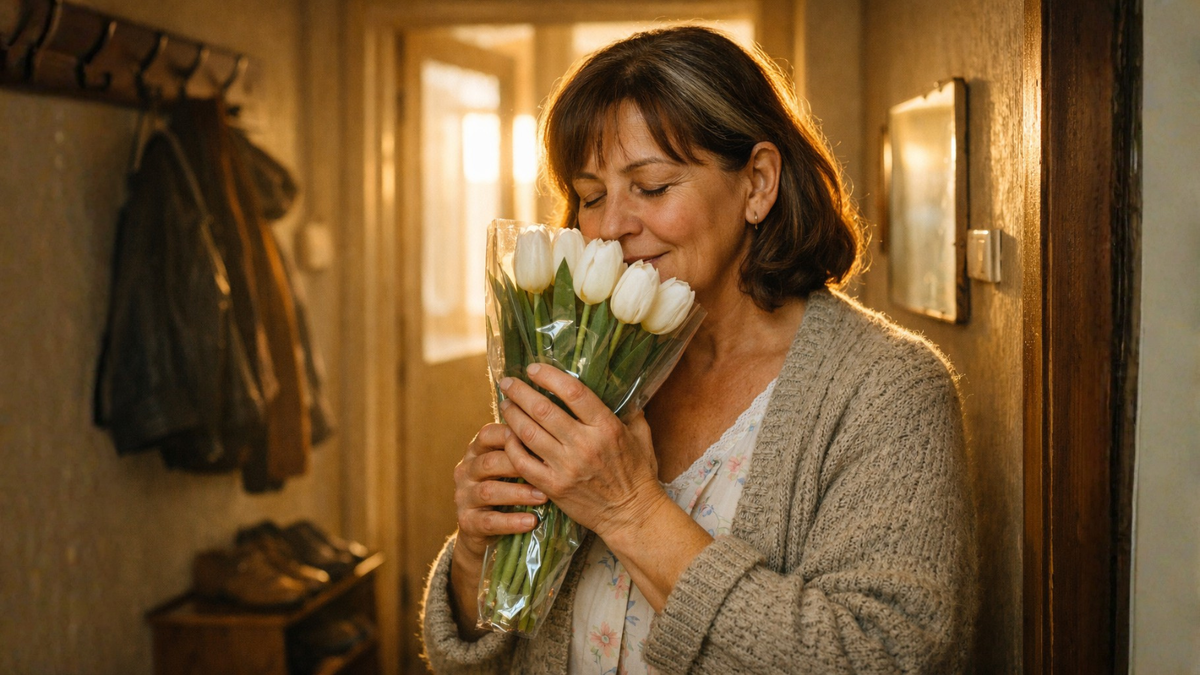 Каждое восьмое марта, ровно в девять утра, курьер приносил белые тюльпаны. Ни записки, ни имени. Я гадала двадцать лет. А когда мужа не стало, цветы продолжали приходить.