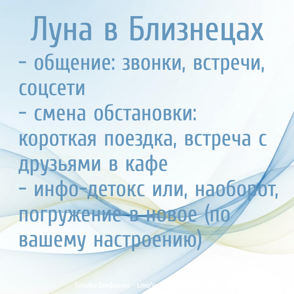 Сегодня продолжаю тему отдыха по Луне и рассказываю про знаки Воздуха - Близнецы, Весы, Водолей - сморите в карточках ⬇️ Я настойчиво рекомендую вам узнать, в каком знаке у вас Луна. Это знание дает гораздо более широкое представление о себе, выходящее за рамки вашего Солнца в знаке. В большинстве случаев Луна у нас стоит не в том же знаке, что и Солнце. И это то, что отличает профессиональную астрологию от газетных гороскопов. Поэтому, когда вы читаете описание своего знака в Интернете, вы видите в нем много несоответствий вам реальному. Чем Луна отличается от Солнца? ➖ Луна - внутреннее, бессознательное восприятие мира, Солнце - сознание, то, что мы демонстрируем вовне ➖ Луна - эмоции, Солнце - эго ➖ Луна - душевный комфорт, Солнце - энергия, батарейка Поэтому, если хотите узнать, в каком знаке у вас стоит Луна, пишите мне в комментариях. Я с радостью посмотрю! Отдых по Луне в других стихиях: