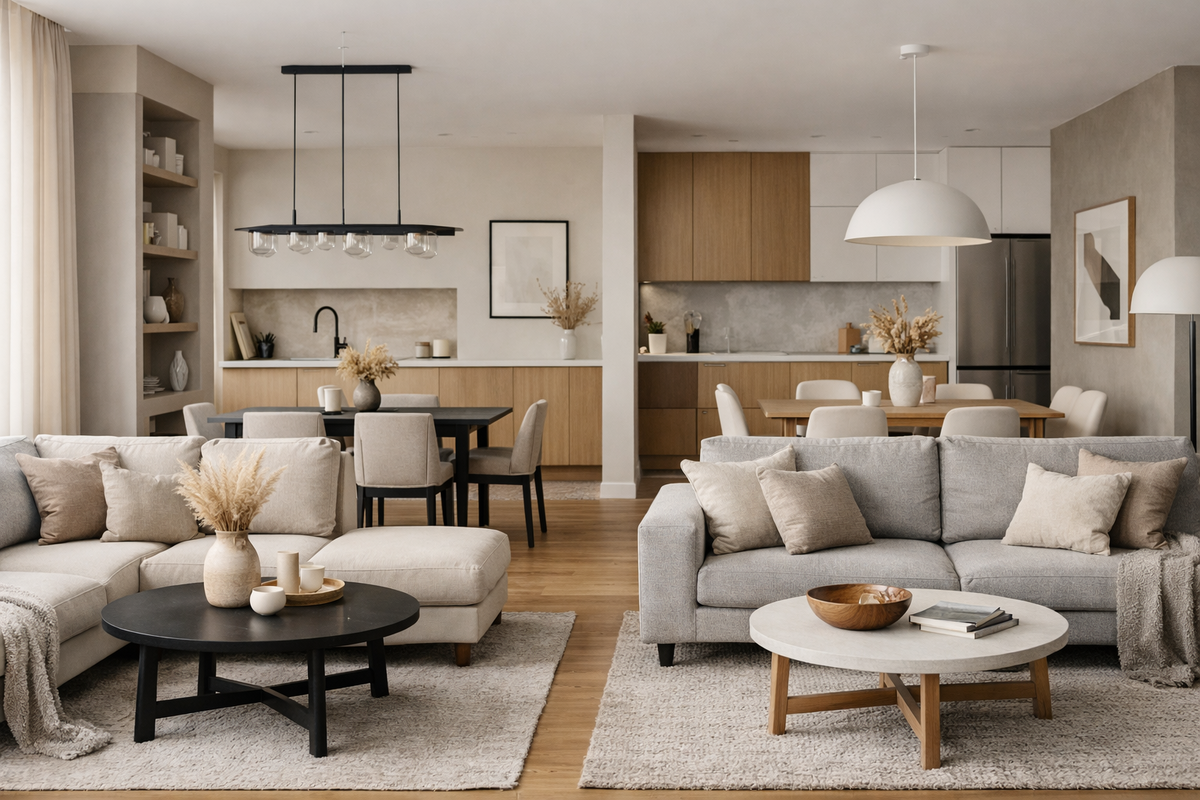 Одинаковый серо-бежевый фон. Один и тот же диван с тонкими металлическими ножками. Кухня без ручек. Декоративная рейка за телевизором. Трековое освещение по периметру. Будто существует один большой склад готовых решений, откуда всем раздают один и тот же комплект. Это не совпадение. Это алгоритм. Pinterest и социальные сети сформировали новый визуальный стандарт. Алгоритмы показывают то, что уже нравится большинству. Мы видим одно и то же, сохраняем одно и то же, повторяем одно и то же. В итоге картинка становится безопасной, предсказуемой и… обезличенной. Парадокс в том, что эпоха визуального изобилия породила визуальную одинаковость. Когда клиент приходит на первую встречу, он почти всегда начинает с фразы: «Мы хотим что-то современное. Чтобы не перегружено. Спокойно. Как у всех, но со вкусом». В этой формуле — ключ к проблеме. Люди боятся сделать интерьер, который через пять лет покажется странным. Боятся цвета. Боятся сложных материалов. Боятся, что гости не поймут. Боятся, что ква