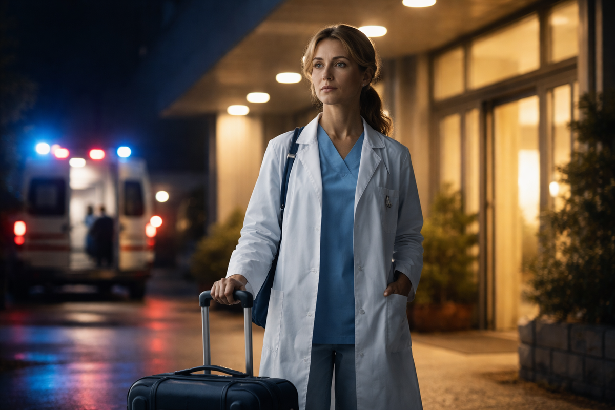 Дежурный врач посмотрел на неё, затем на чемодан и тихо сказал: