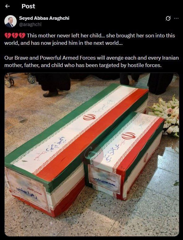 Иран. Жертвы агрессии Израиля и США. Мать и ребенок.