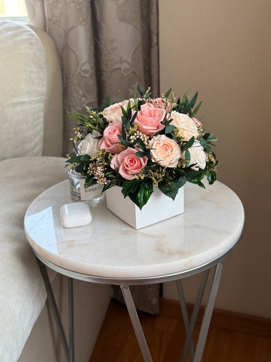 ⚜️Стабилизированный букетик «Sweet peach» ⚜️Цена: 9000₽ (ваза входит в стоимость) ⚜️Размер с учётом вазы: высота ~17 см, диаметр ~15 см. ⚜️Заказы принимаем на @Dostavkaroze или по телефону 89264344455