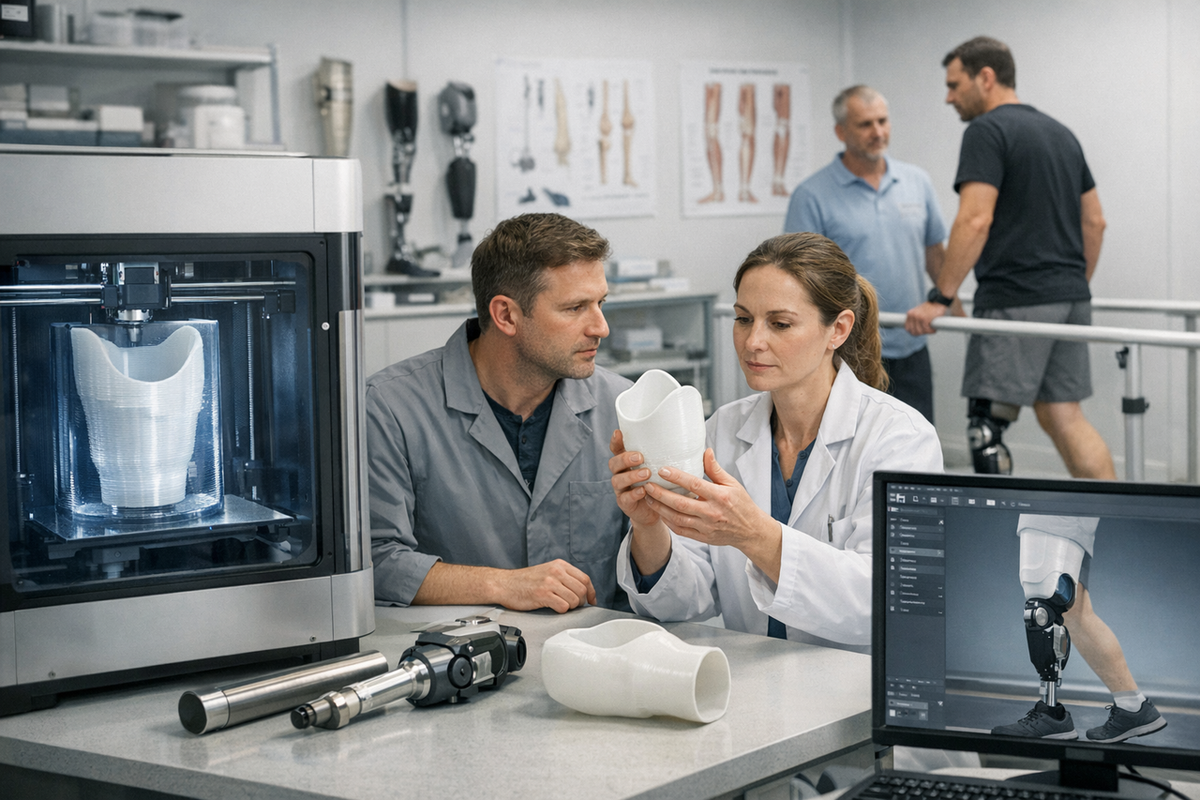 Внедрение 3D-технологий меняет саму логику производства протезов. Ключевым элементом новой системы становится цифровое сканирование культи пациента. Вместо гипсового слепка используется 3D-сканер, который за несколько минут создаёт точную цифровую модель поверхности. Полученные данные обрабатываются в специализированном программном обеспечении, где специалист может корректировать форму будущего культеприёмника, учитывая анатомические особенности пациента. После этого модель отправляется на 3D-принтер, который печатает заготовку с высокой точностью. Такой подход позволяет значительно сократить время изготовления протеза. Если традиционный цикл производства мог занимать несколько недель, то при использовании цифровых технологий часть этапов сокращается в несколько раз. Кроме того, повышается точность посадки культеприёмника — ключевого элемента протеза, который контактирует с телом пациента. Даже небольшая ошибка в несколько миллиметров может вызывать боль, натирание и ограничение подвижности. 3D-печать позволяет добиться более точной геометрии и более равномерного распределения нагрузки.