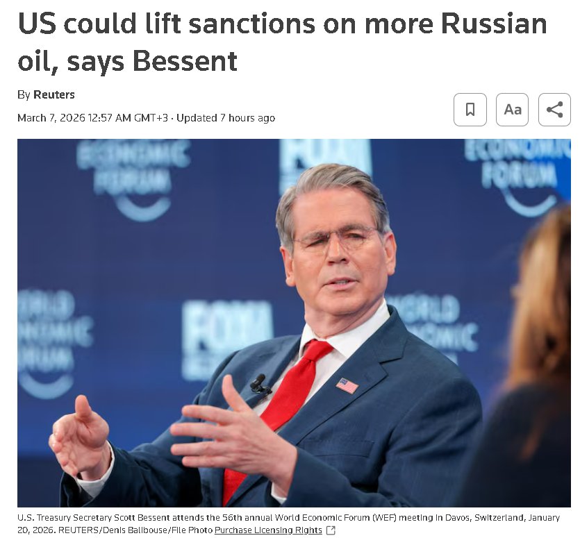По данным агентства Anadolu, Бессент подчеркнул, что администрация Трампа планирует регулярно объявлять о мерах по оказанию помощи рынку во время этого конфликта . Высокие цены на нефть — болезненная точка как на внутреннем, так и на международном рынках.