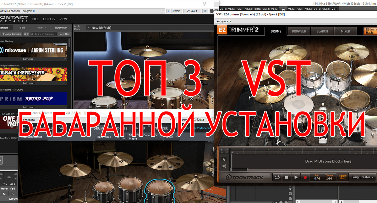 Вот мой топ-3 VST плагинов для ударных установок, основанный на их популярности, функциональности и качестве звука: 2. Toontrack Superior Drummer 3:Почему: Superior Drummer 3 - это монстр детализации и реализма. Он предлагает огромное количество артикуляций, расширенные возможности сведения (вплоть до настройки положения микрофонов), акустику помещения и мощный браузер для поиска звуков и MIDI-паттернов. Это, пожалуй, самый глубокий и профессиональный инструмент для создания акустических ударных.
