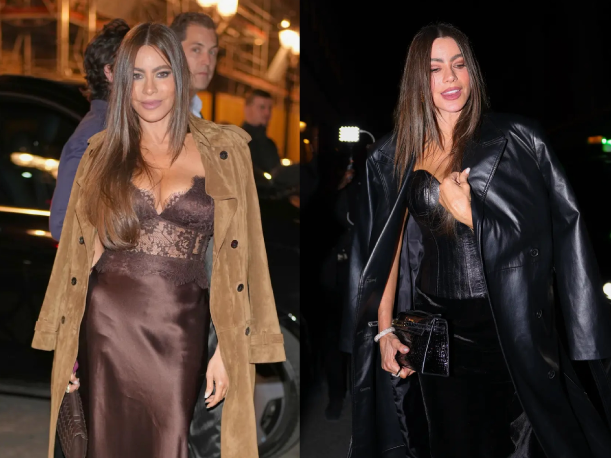Когда речь заходит о стиле Софии Вергара, невозможно не вспомнить одну деталь её светской биографии. В своё время миллиардер Джефф Безос проявлял к ней интерес. Эта история обсуждалась в прессе и светских кругах, однако актриса не стала частью этой громкой романтической хроники. Вергара всегда производила впечатление женщины, которая привыкла выбирать сама. Карьера, статус в Голливуде и финансовая независимость позволили ей выстроить собственную траекторию жизни. Поэтому её гардероб тоже давно стал самостоятельной темой для обсуждения. Недавний выход актрисы в Париж снова это подтвердил. Вечером она появилась в знаменитом парижском отеле-ресторане Hôtel Costes в эффектном чёрном образе. Основой наряда стал глубокий кожаный корсет, созданный на заказ дизайнером Laura Basci. Его актриса сочетала с бархатной юбкой бренда Cami NYC и кожаным плащом, накинутым на плечи. Главным предметом обсуждения стала сумка. Речь идёт о миниатюрной модели Kelly из блестящей кожи аллигатора от дома Hermès