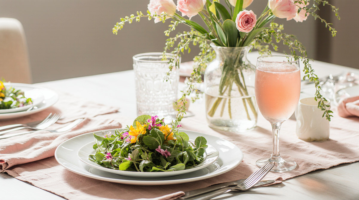 - Посуда и текстиль: Возьмите самую красивую посуду. Белые тарелки — идеальный фон для яркой еды. Добавьте салфетки нежных весенних цветов: сиреневого, мятного, розового.