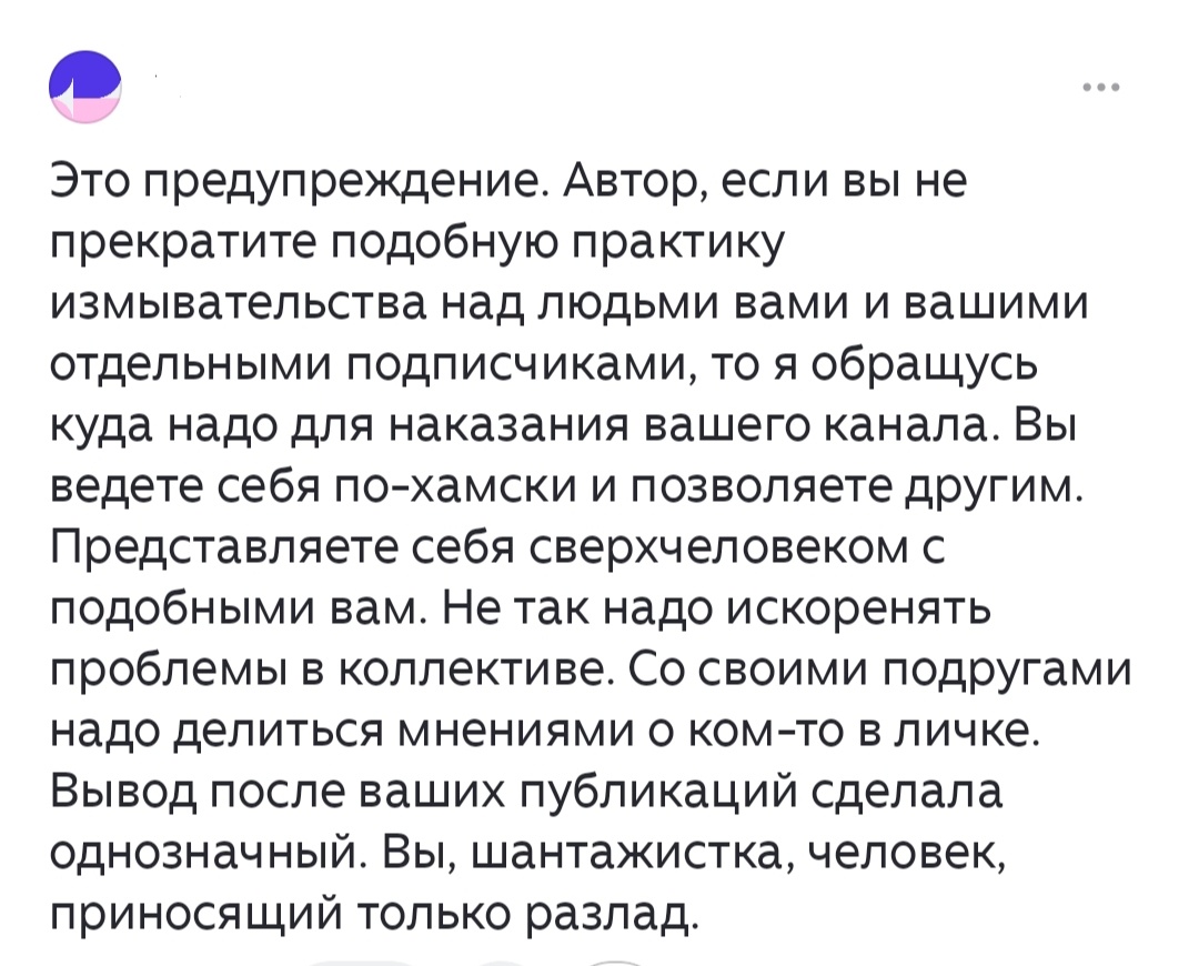 Вот такой необычный комментарий от женщины, его не все успели прочитать, как комментатор все удалив, ушла обращаться "куда надо".