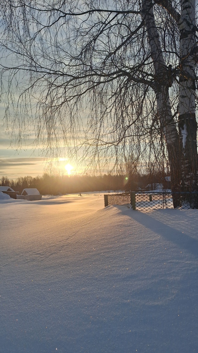 Солнце уже золотит верхушки деревьев, но в тени всё так же еще царствует зима.
