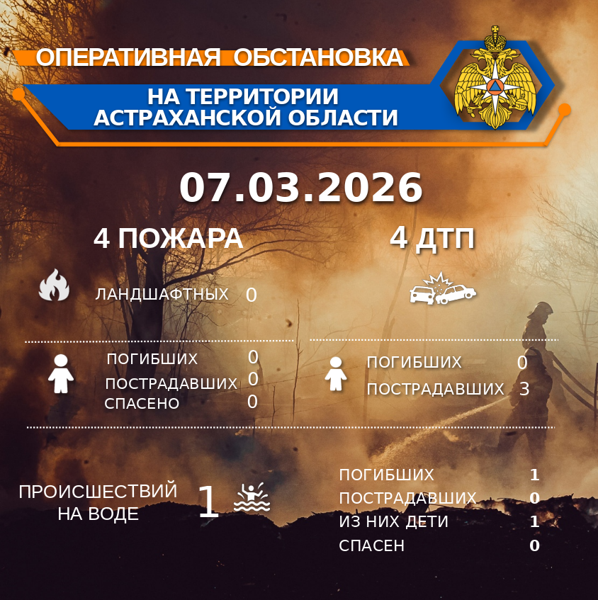 Оперативная обстановка на территории Астраханской области по состоянию на 00:00 07.03.2026.