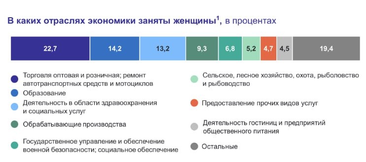 Наиболее популярными у женщин являются следующие сферы деятельности: ▶️ оптовая и розничная торговля, ремонт автотранспортных средств и мотоциклов - 22,7%, ▶️ образование - 14,2%, ▶️ здравоохранение - 13,2%, ▶️ обрабатывающие производства - 9,3%. Образование работающих женщин в возрасте от 15 лет и старше: ⏯ 38,1% - высшее образование, ⏯ 36,9% - среднее профессиональное образование по программе специалистов среднего звена, ⏯11,1% – по программе квалифицированных рабочих (служащих). Инфографика от Волгоградстата представлена в слайдах. 🏛 Дума в МАХ 🔜🔜 ПОДПИСАТЬСЯ 👉