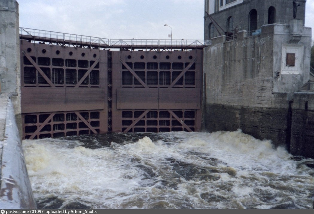 Средние ворота Гидроузел №8 Канала имени Москвы. Средние ворота во время шлюзования. 📍 улица Водников, Москва, Центральный федеральный округ 📅 Примерно 1997 год 📱 Мы в ВК #ИсторияФлота #PastVu