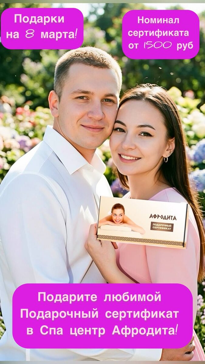 на СПА отдых для любимых и близких на 8 марта!💞 ►⠀◄ Хотите сделать особенный подарок 💝 ? Подарите💞 незабываемые моменты релакса и ухода! ►⠀◄ Наш сертификат откроет двери в мир красоты и ухода- пусть ваша любимая насладится профессиональными СПА‑процедурами и почувствует себя по‑настоящему особенной. ►⠀◄ Подарите заботу, подарите эмоции, подарите СПА! ✨ 🌟СПА «Шоколадное наслаждение»- для почитателей шоколада! 190 минут/13500руб ►⠀◄ 🌟СПА «Афродита -Богиня красоты» для ценителей моря 190 минут/13500 руб ►⠀◄ 🌟СПА 1001 ночь- для любителей восточных специй и ароматов : ваниль, пачули, черный кунжут и мароканская глина. 170 минут/9950 руб ►⠀◄ 🌟СПА «Тропический уход Баунти» -вас ждут потрясающие ароматы кокоса, лайма и мяты! 170 минут/9550 руб ►⠀◄ 🌟 СПА имбирный пряник - что может согреть в морозы лучше, чем ароматы карамели, имбиря и корицы 140 минут/8850 руб ►⠀◄ 🌟СПА Венская кофейня- ароматный уход, напоминающий о любимой кофейне 120 минут/7600 руб ►⠀◄ 🌟СПА Вишн