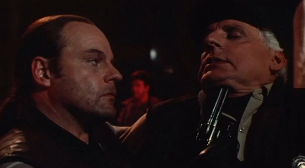 В 1991 году Маркхэм нанял вместо Джона Уэйна Майкла Айронсайда. Само по себе это любопытно: канадский «король эпизода» за полвека своей карьеры, если и попадал на постеры, то почти всегда в качестве главного злодея — героические роли доставались ему крайне редко. А тут сразу Джон, мать его, Уэйн — актёр-архетип, легенда, икона, суперзвезда и всё такое прочее. Хотя, может быть, это и есть разгадка — Малыш Джонни Ринго, которого играл Джон Уэйн в «Дилижансе», был разыскиваемым преступником, за голову которого была объявлена награда в 500 долларов.