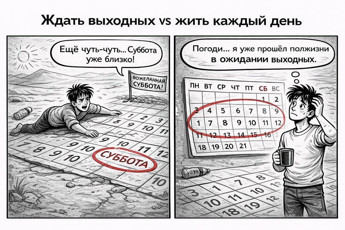 Энергия и ресурс Вчера в нашем сообществе предпринимателей я задал вопрос: кто как относится к выходным дням? Раньше я был из тех людей, которые не любят выходные. Потому что ничего не происходит, нет работы и все отдыхают. Я всегда любил субботу по другой причине — можно спокойно поработать. Телефон не звонит, нет встреч. Появляется время для спокойной, творческой работы. Но в последнее время заметил за собой странную вещь. Я начал ждать субботу и воскресенье. И радоваться, когда рабочая неделя заканчивается. Меня это настораживает. Я из тех людей, которые считают, что работа должна быть образом жизни. Когда ты просто делаешь своё дело и не особо замечаешь дни недели. Просто живёшь и делаешь то, чем занимаешься. Но, похоже, сейчас что-то поменялось. Либо появились интересы на выходные — и поэтому я их жду. Либо накапливается физическая усталость. Пока сам до конца не разобрался. Но уже начал копать в эту сторону. И если рассуждать чуть философски, появляется ещё одна мысль.