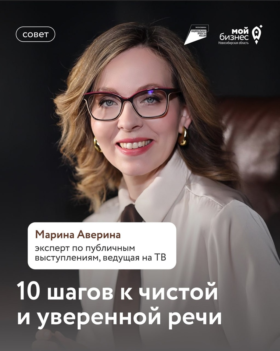Сегодня расскажем о способах, как говорить свободно и легко! А всё потому что изучили инструкцию «10 шагов к чистой и уверенной речи» тренера по публичным выступлениям и эксперта «Мой бизнес» Марины Авериной. Делимся им с вами! И напоминаем о нашем совместном с Мариной материале, который научит вас говорить о вашем бизнесе, так, чтобы с вами хотели работать ☺️ ❄️ Мой бизнес в Новосибири: ВК · МАХ · Tg · ОК · сайт #полезное