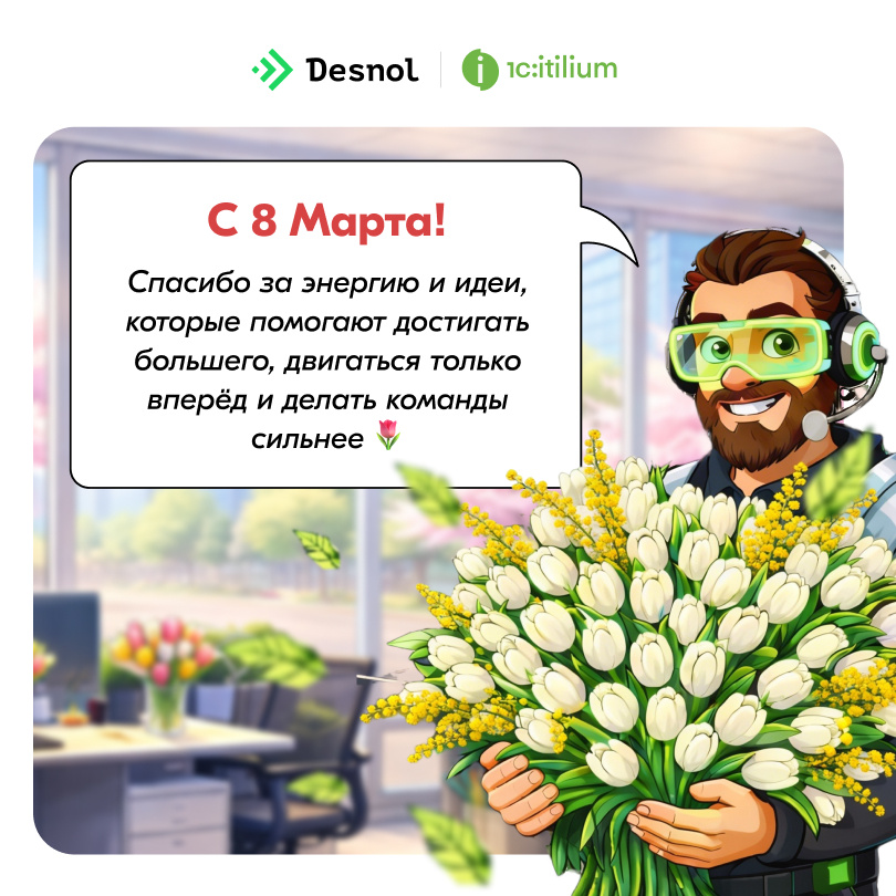 🌷 В IT, в бизнесе, в управлении, в сервисе — везде, где есть женщины, становится больше энергии, идей и вдохновения. И это не случайность. Вы умеете одновременно решать сложные задачи, поддерживать команды, замечать важные детали и создавать ту самую атмосферу, благодаря которой работа превращается в настоящее сотрудничество. Поздравляем вас с 8 Марта и пусть этой весной будет больше лёгкости и радостных моментов. А задачи решаются быстрее, чем приходит первое мартовское тепло. Для вас, мужчины, мы вместе с ИИ-ассистентом Платоном подготовили небольшую серию открыток. Каждая начинается со слов «Спасибо за…» — потому что у каждого из нас есть свои причины сказать это женщинам рядом. Коллеги, выбирайте открытку и отправляйте её тем, кого хотите поздравить.