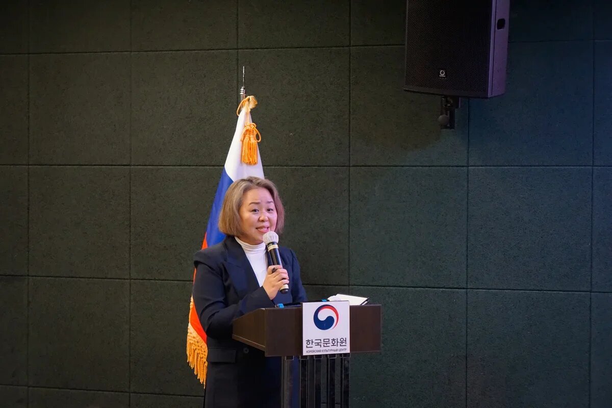 Директор московского офиса Национальной организации туризма Кореи (НОТК) г-жа Юк Ген Ын представляет новое объединение Visit Korea Union. Фото: московское представительство Национальной организации туризма Кореи (НОТК)