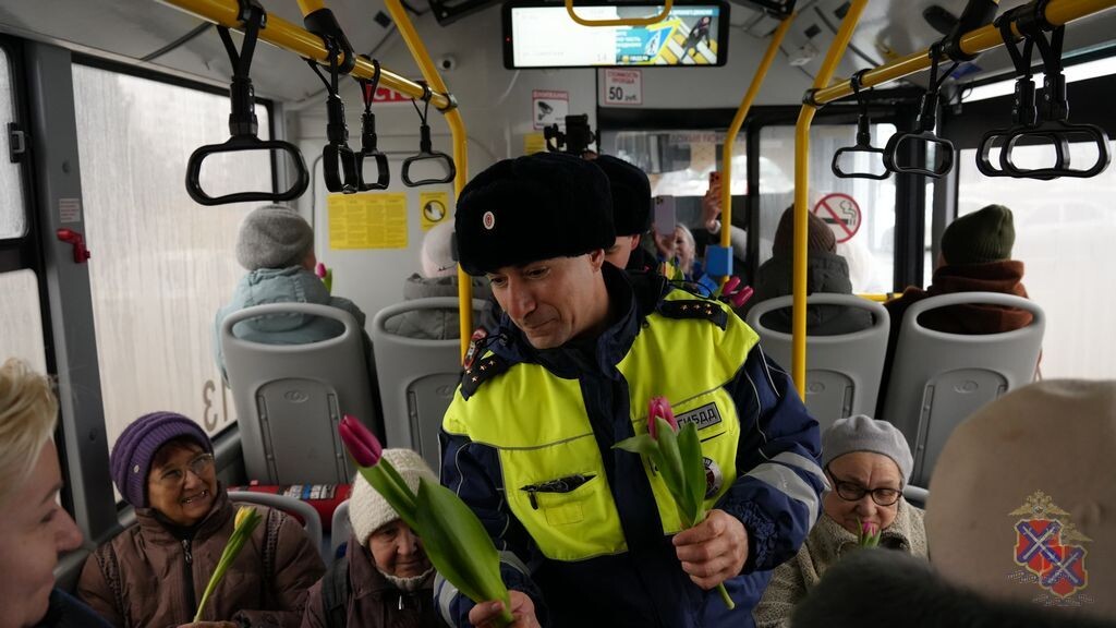 В преддверии 8 Марта в Волгоградской области проходят праздничные акции, посвященные прекрасным дамам. Так, инспекторы ДПС Волжского останавливают машины и вручают цветы женщинам. Фото: пресс-служба ГУ МВД России по Волгоградской области В Волжском участники «Цветочного патруля» поздравляют автоледи и пассажирок с праздником весны. В доброй акции участвуют сотрудники ГАИ, кинологи и общественники. Вместо привычной фразы «предъявите ваши документы» сегодня звучат теплые пожелания в адрес прекрасных дам. Вместе с букетами весенних цветов автомобилистки также получили советы по соблюдению ПДД, сообщает ГУ МВД России по региону. Смотрим «Вести. Волгоград»: smotrim.ru/Volgograd Подписывайтесь на наши страницы в соцсетях: Telegram, ВКонтакте, Одноклассники, Дзен, MAX