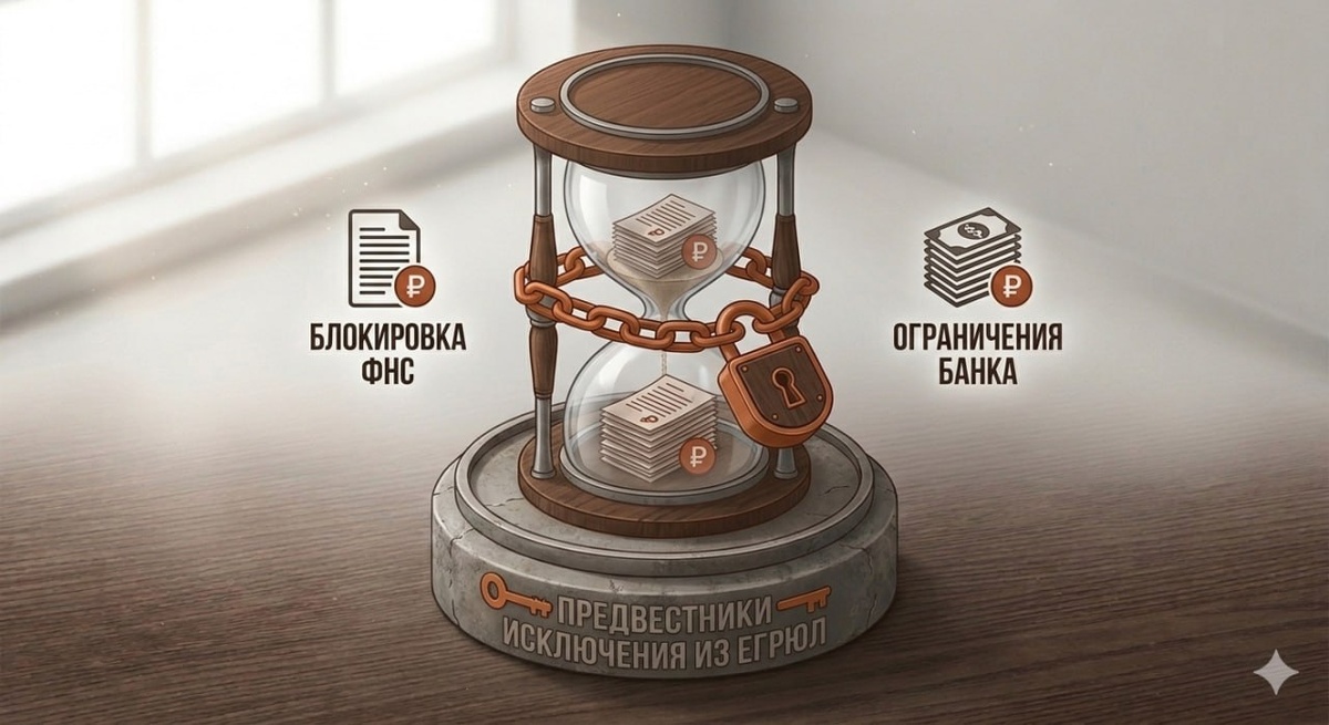 Мы разобрали, как компанию вычеркивают из реестра за «молчание» и за «недостоверность». Но до того, как это случится, вы почти гарантированно столкнетесь с параличом финансов. И это страшнее, чем просто письмо из налоговой. В заключительной серии говорим про блокировку счетов. А также разбираем инструкцию по спасению: что делать, если компания уже получила блокировку или решение об исключении. Спойлер: бросить — не вариант. Блокировка раньше исключения: как не дать счёту умереть и спасти «спящую» компанию 🚫 Мы уже знаем, что ФНС может исключить компанию из реестра, если она не ведёт деятельность или не следит за сведениями в ЕГРЮЛ. Но до того, как это произойдёт, вы почти гарантированно пройдёте через блокировку счетов. 🚫 Блокировка за молчание (отчётность) Если вы не подали декларацию или расчет в течение 20 рабочих дней после установленного срока, налоговый орг
