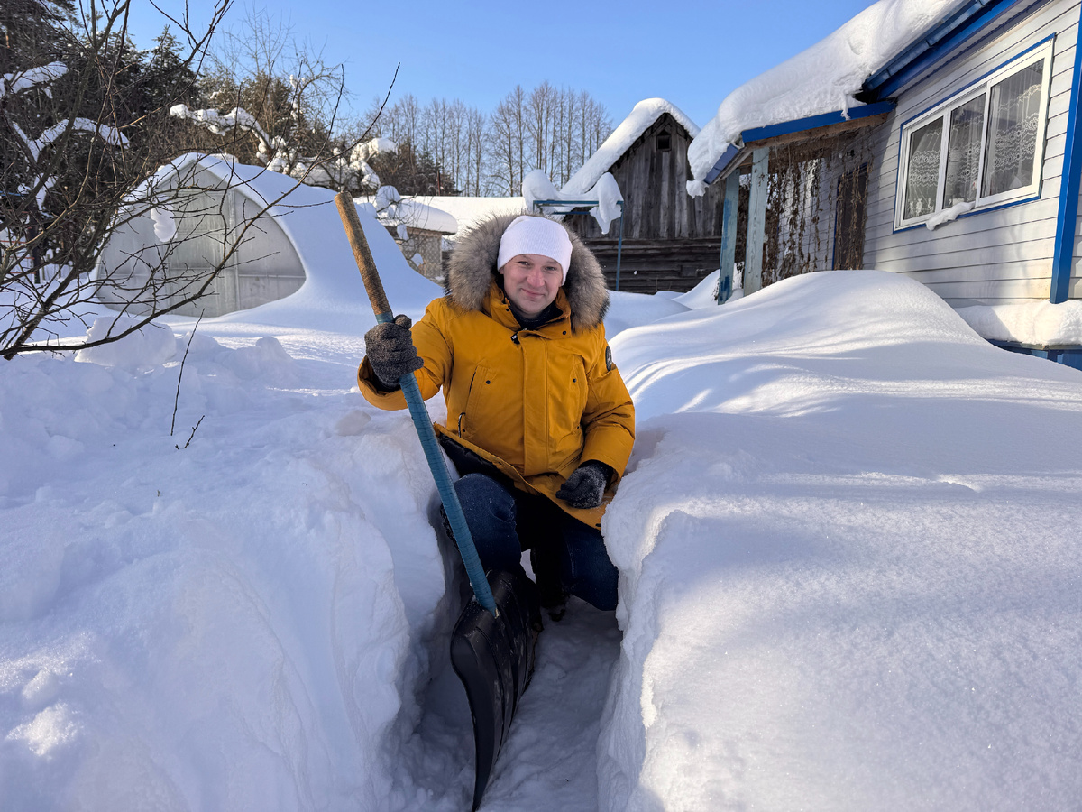 Пока ехали, думали: вполне может быть, до дома вообще не проберёмся. Снега навалило столько, что дорога могла легко сравняться с сугробами. Но нам повезло: накануне здесь прошёл трактор и расчистил проезд.