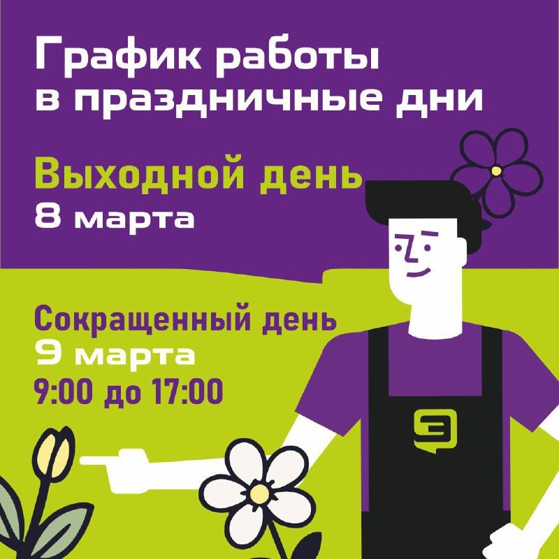 9 марта работаем в сокращённом режиме: