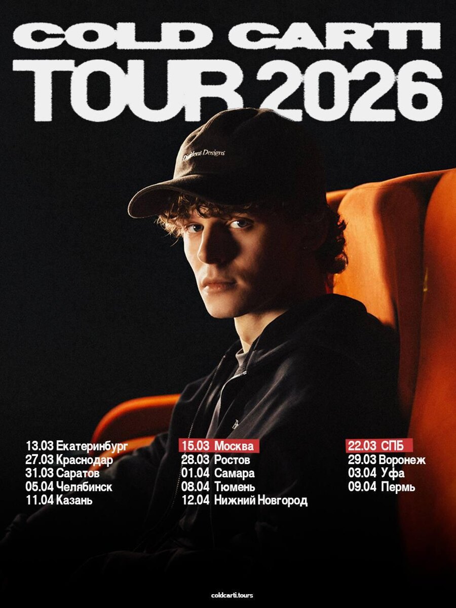 🎤 – cold carti 📍– 14 городов: Екатеринбург, Москва, Санкт-Петербург, Краснодар, Ростов-на-Дону, Воронеж, Саратов, Самара, Уфа, Челябинск, Тюмень, Пермь, Казань, Нижний Новгород 🗓 – 13 марта 2026 – 12 апреля 2026 💵 – от 1 800 руб. 🔗 – билеты (16+ можно с родителями, Екатеринбург – строго 16+) #концерты #билетынаконцерт #coldcarti #екатеринбург #москва #санктпетербург #краснодар #ростовнадону #воронеж #саратов #самара #уфа #челябинск #тюмень #пермь #казань #нижнийновгород 👉 Список концертов: март • апрель • май @est_prohodka