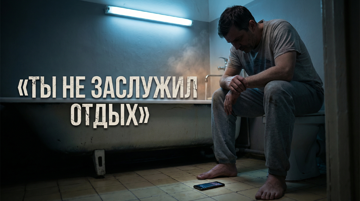Внутри тебя сидит убеждение, которое ты принимаешь за собственный характер: отдых надо заслужить. Сначала разберись со всем, потом уже имеешь право на тёплую ванну, на вечер без дёрганья, на то, чтобы лежать и смотреть в потолок без этого сосущего чувства, что ты крадёшь время у кого-то более важного. Откуда это взялось — ты не помнишь. Может, отец так жил. Может, мать так говорила. Может, просто воздух такой был в девяностые, когда ты формировался: «я устал» означало «я слабак», и ты научился не произносить этих слов. Но это наследство ядовитое, оно тебя травит изнутри, и ты так привык к этому привкусу, что уже не замечаешь.