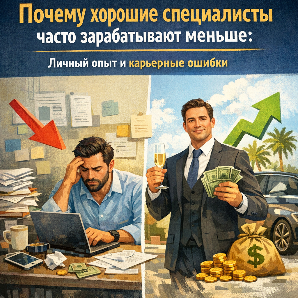 Тема: работа, карьера, заработок, профессионализм, личный опыт Существует парадокс: хорошие специалисты, опытные и талантливые, часто зарабатывают меньше, чем менее квалифицированные коллеги. Почему так происходит? Причины кроются не только в навыках, но и в подходе к работе, коммуникации, умению себя продать и оценить свой труд. Я хочу поделиться личным опытом, 3 подробными жизненными случаями и выводами о том, как умение зарабатывать зависит не только от профессионализма, но и от навыков продвижения себя и своих компетенций. Если вы читаете Дзен в поисках честных историй о работе, карьере и заработке, эта статья будет полезна.