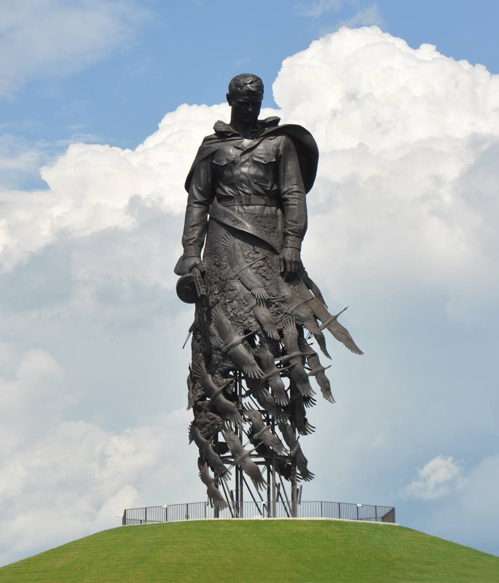 Ржевский мемориал Советскому солдату — один из самых современных военных мемориалов страны. 80-метровая фигура солдата словно растворяется в стае журавлей. ▪ Открыт в 2020 году. ▪ Построен на народные пожертвования. ▪ В основе — идея «солдат, уходящий в бессмертие». ▪ Используются цифровые технологии и мультимедийные решения. Это пример того, как современное искусство говорит о прошлом. Память живёт, пока о ней говорят.