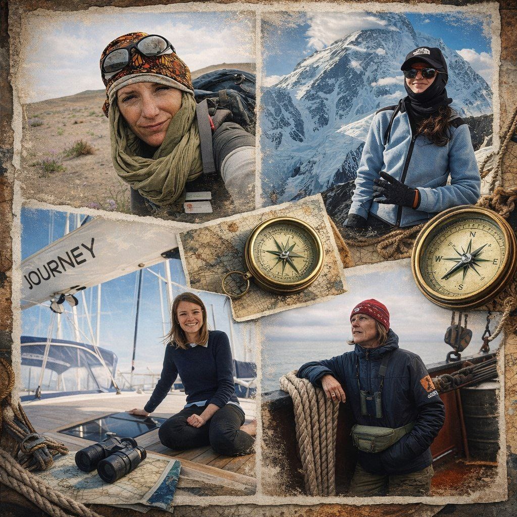 ! И мы продолжаем рассказывать о женщинах, покоряющих мир: познакомимся с современными путешественницами. ⚡ Марина Галкина — писательница и путешественница, автор документальных фильмов о своих пеших и водных путешествиях по труднодоступным местам. В 2021 году отправилась в длительное пеше-водное путешествие от Хатангского залива, прошла через горы Бырранга и дошла до мыса Челюскина. Помимо Камчатки и Чукотки, в копилке Галкиной — Таймыр, Хабаровский край, Якутия, многочисленные сплавы, восхождения, пешие и водные экспедиции. В книге «Одна на краю света» рассказывает о одиночных путешествиях по Чукотке — 1000-километровом пересечении Чукотки от Анадыря до Мыса Шмидта. ⚡ Алина Пекова. В 2024 году взошла на все 14 восьмитысячников на Земле и стала обладательницей «Короны Земли» — почётной награды за покорение всех главных вершин. Экспедиция стартовала весной 2023 года с горы Аннапурна, завершилась 9 октября 2024 года на Шишабангме. ⚡ Джессика Уотсон — австралийская мореплавательница