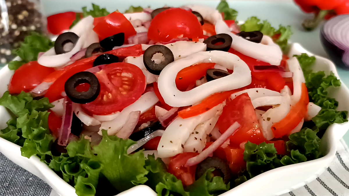 ΠΡΠ³ΠΊΠΈΠΉ ΡΠ°Π»Π°Ρ Ρ ΠΊΠ°Π»ΡΠΌΠ°ΡΠ°ΠΌΠΈ - ΠΈΠ΄Π΅Π°Π»ΡΠ½ΡΠΉ Π²Π°ΡΠΈΠ°Π½Ρ Π΄Π»Ρ Π²Π΅ΡΠ½Ρ ΠΈ Π»Π΅ΡΠ°! Π‘Π²Π΅ΠΆΠ΅ΡΡΡ Π±ΠΎΠ»Π³Π°ΡΡΠΊΠΎΠ³ΠΎ ΠΏΠ΅ΡΡΠ°, ΡΠ»Π°Π΄ΠΎΡΡΡ ΡΠ΅ΡΡΠΈ, ΠΏΠΈΠΊΠ°Π½ΡΠ½ΠΎΡΡΡ ΠΊΡΠ°ΡΠ½ΠΎΠ³ΠΎ Π»ΡΠΊΠ° ΠΈ ΠΌΠ°ΡΠ»ΠΈΠ½, Π°ΡΠΎΠΌΠ°ΡΠ½Π°Ρ Π»ΠΈΠΌΠΎΠ½Π½Π°Ρ Π·Π°ΠΏΡΠ°Π²ΠΊΠ° Ρ Π±Π°Π·ΠΈΠ»ΠΈΠΊΠΎΠΌβ¦ ΠΠΎΡΠΎΠ²ΠΈΡΡΡ Π±ΡΡΡΡΠΎ, Π²ΡΠ³Π»ΡΠ΄ΠΈΡ ΡΡΡΠ΅ΠΊΡΠ½ΠΎ, Π° Π²ΠΊΡΡ β ΠΏΡΠΎΡΡΠΎ Π²ΠΎΡΡΠΎΡΠ³!