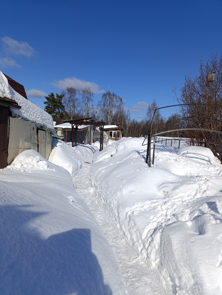 Снега ещё - ого-го! Он вроде и тает, но опять выпадает. Из-за прошлой оттепели образовался плотный наст и Марсик теперь спокойно бегает по сугробам.