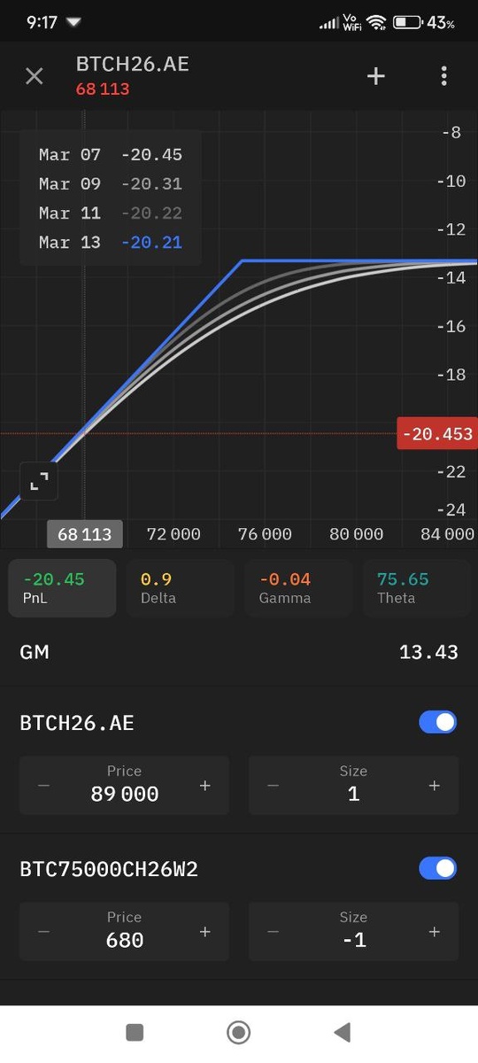 Продолжаю крутить колесо в ожидании роста битка. Кстати вчера экспирировался проданный колл вне денег, премию я получил и фьючерс не схлопнулся. Почти сразу продал еще колла.