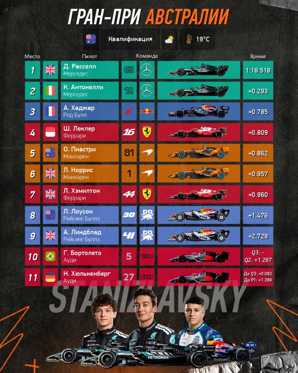 Результаты квалификации Гран-При Австралии 2026