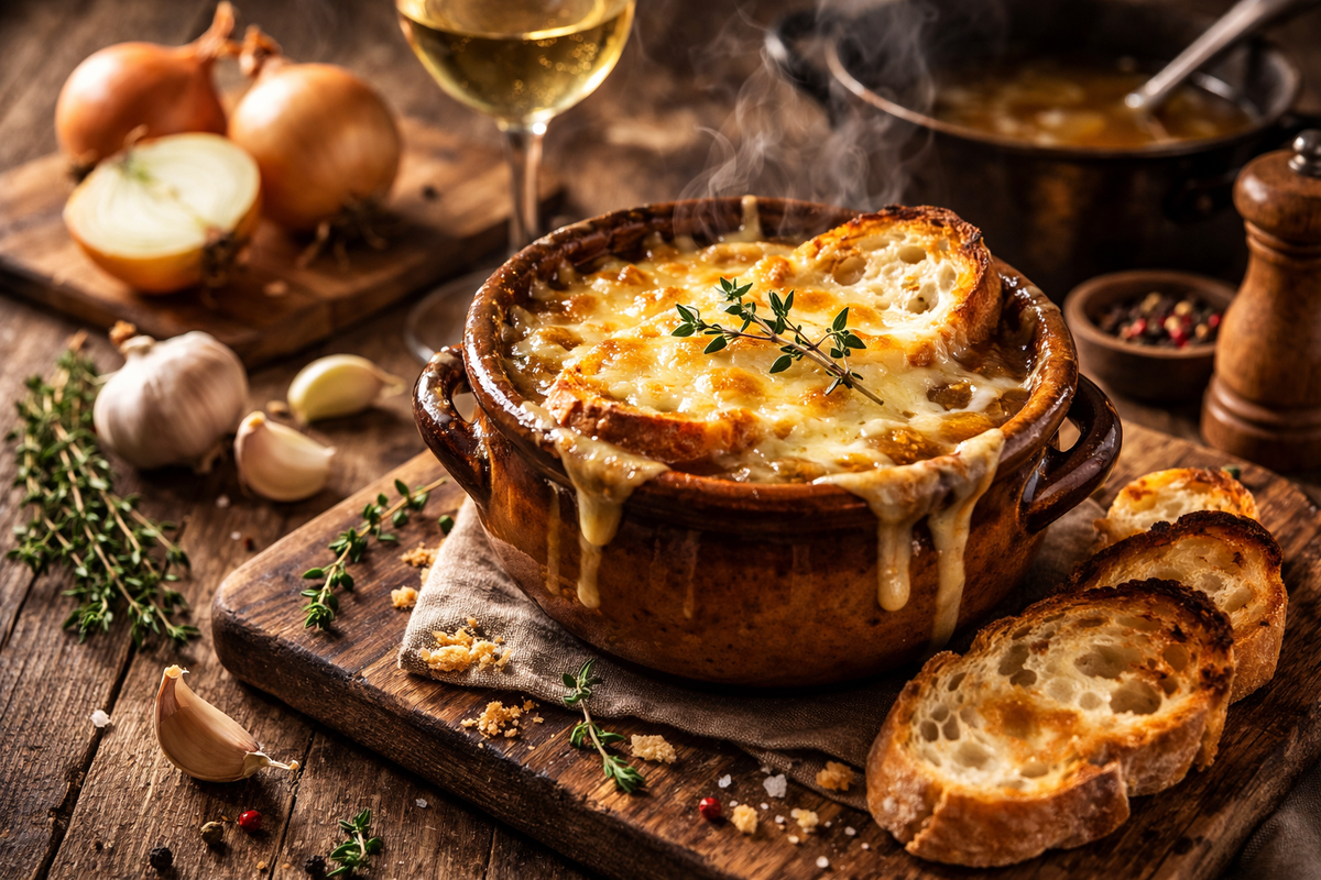 Но сами французы почти никогда не выбирают его в ресторанах. Парадокс в том, что это одно из самых любимых блюд во Франции. Если вам нравятся такие гастрономические открытия и настоящие блюда разных стран, иногда заглядывайте и в мой телеграм канал «Вкус мира». Там я делюсь кухнями разных стран и рецептами, которые местные жители готовят у себя дома. Французский луковый суп появился задолго до появления модных ресторанов. Когда то его готовили на парижских рынках. Ночью торговцы и грузчики собирались в маленьких бистро и ели горячий густой суп из карамелизированного лука и бульона. Это была простая, сытная и очень ароматная еда. Позже суп попал в рестораны и стал частью гастрономической культуры Франции. Но дома его продолжают готовить гораздо чаще. Во французских семьях этот суп часто появляется зимой. Его готовят вечером, когда хочется теплой еды, собираются