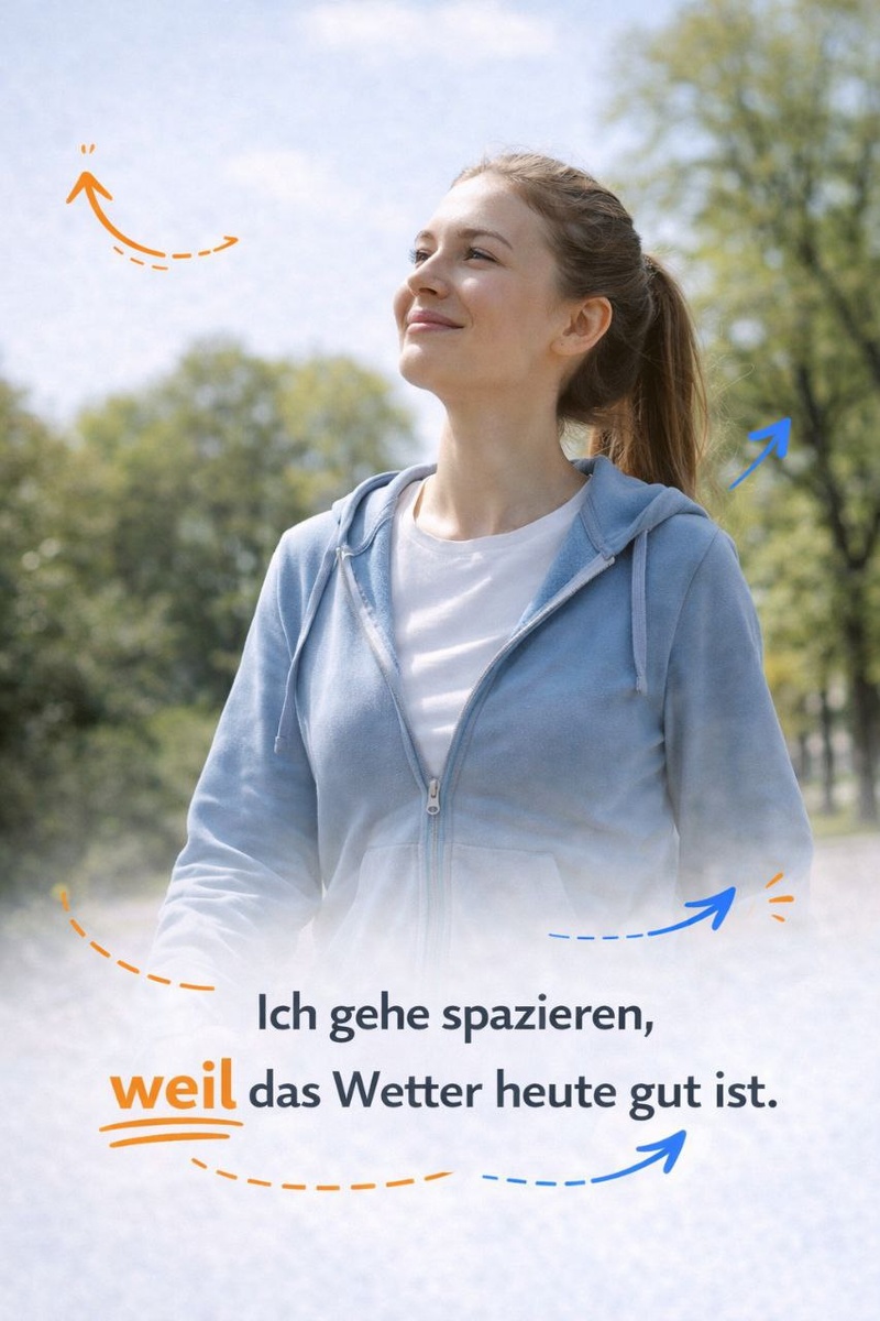 Hauptsatz + weil / dass / obwohl + … + Verb.