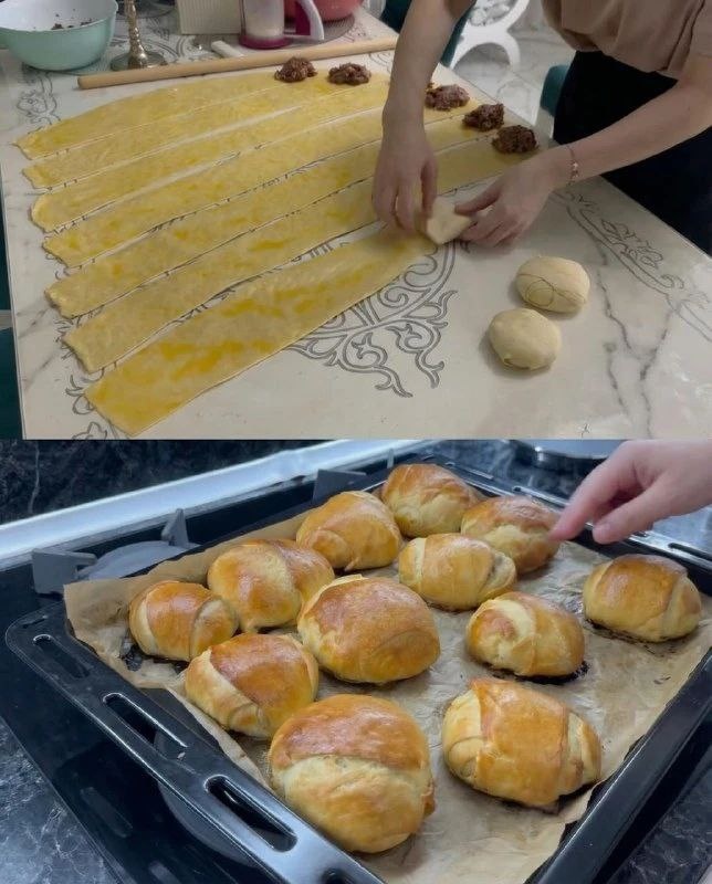 РАСТОПЛЕННОМ МАРГАРИНЕ, БЛАГОДАРЯ КОТОРОМУ СЛОИ ПОЛУЧАЮТСЯ ПРОСТО ИДЕАЛЬНЫМИ! ДАВАЙТЕ СКОРЕЕ ГОТОВИТЬ! 🥟 ДОМАШНЯЯ САМСА С МЯСОМ В ДУХОВКЕ ИНГРЕДИЕНТЫ: ТЕСТО: ✅ Тёплая вода и молоко — 50/50 ✅ Соль — 1 ч. л. ✅ Сухие дрожжи — 1 ч. л. ✅ Мука — 500 г НАЧИНКА: ✅ Мясо — 200 г ✅ Лук — 1 большая луковица ✅ Соль — по вкусу ✅ Чёрный перец — по вкусу ДОПОЛНИТЕЛЬНО: ✅ Растопленный маргарин — для слоёв ✅ Яичный желток — для смазывания ✅ Кунжут — по желанию ПРИГОТОВЛЕНИЕ: 1. В миске соединить тёплую воду с молоком, добавить соль и дрожжи, перемешать. 2. Постепенно всыпать муку и замесить мягкое, эластичное тесто. 3. Накрыть тесто и дать немного отдохнуть. 4. Мясо мелко нарезать или прокрутить через мясорубку, добавить мелко нарезанный лук, соль и перец, хорошо перемешать. 5. Тесто тонко раскатать и смазать растопленным маргарином — благодаря этому самса получится слоистой и хрустящей. 6. Свернуть тесто и разделить на части, сформировать заготовки. 7. Раскатать каждую часть, выложить начинку и с