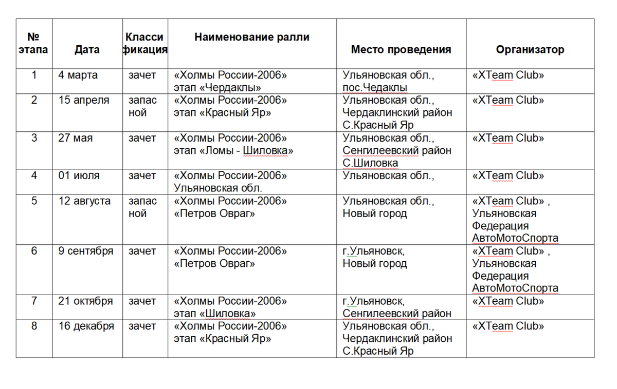 Опубликовали Календарь предстоящих гонок сезона 2006 г.