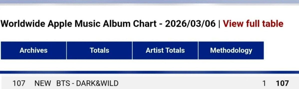 💫 Альбом "Dark & Wild" впервые с момента релиза попал в мировой чарт альбомов Apple Music, заняв 107 строчку чарта!