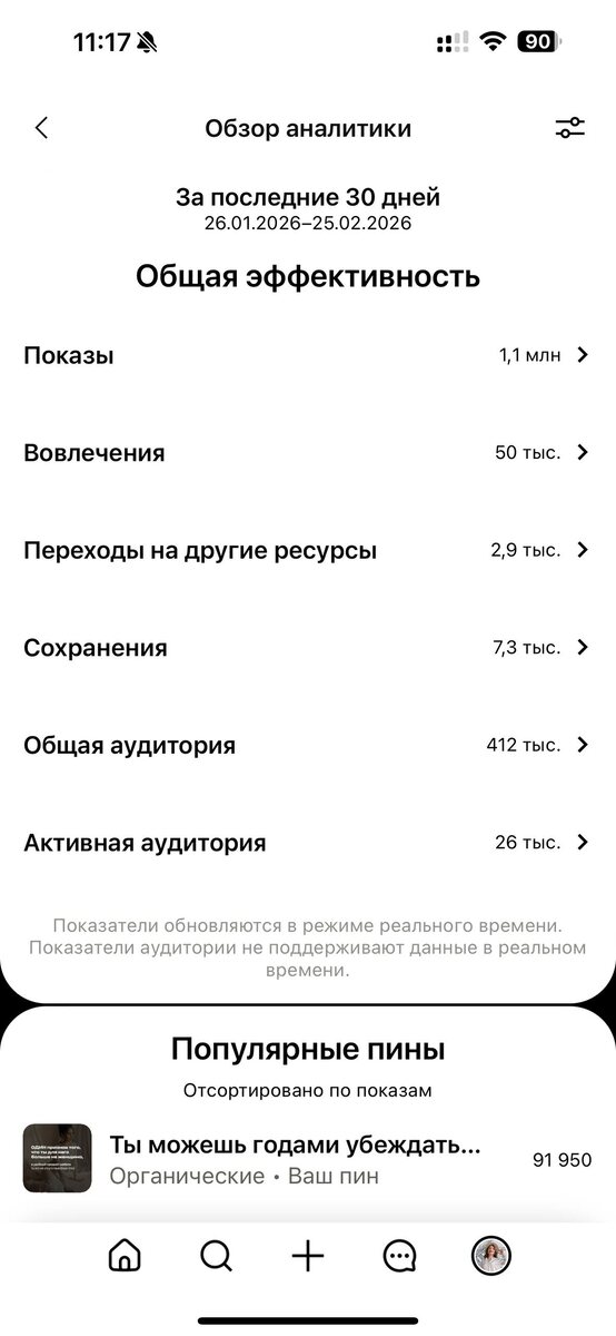 😻 Котики, поздравьте меня с личным результатом - 1 млн 🍋 показов в Pinterest на ненапряжной ежедневной публикации постов-каруселей, которые я делаю на коленке за 10 мин с инструментами Акселератора Создаю посты-карусели для ИГ, они автоматически дублируются в Pinterest 1 карусель в день Я только и делаю, что отправляю лид-магнит в ответ на запрос в комментарии, и завожу читателей в свою воронку ☺️ Зацените статистику: сохранения, переходы по ссылке в посте и пр. Красота 😻 «Всё само» С - система 😉