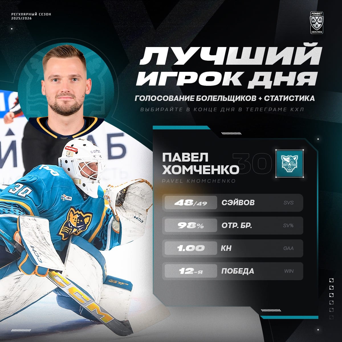 🐆 Павел Хомченко был в 35 секундах от «сухаря», но почти полсотни сэйвов сами по себе стали отличным символом победы ХК «Сочи»!