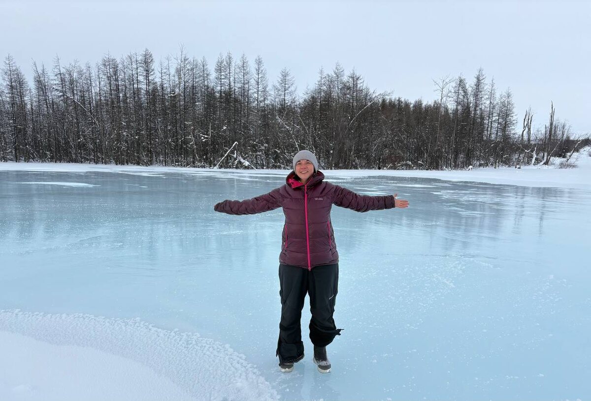 Хонуу – Сасыр. Наледь и прочие красоты. 2 марта. Мы успешно перебрались по наледи через воду и вышли на лёд. Ну, раз уж вышли – как не сфотографироваться и не сфотографировать красоту такую с нежно голубым льдом (я бы даже сказала, голубым с оттенком тиффани). После фотосессии продолжили путь. Путь этот, надо сказать, весьма красив. С одной стороны Момский хребет, с другой – хребет Черского. И по ходу движения мы то один хребет наблюдаем, то второй. В хребте Черского вдали виднеется высшая точка Якутии - гора Победа. Это не та Победа, которая вдруг стала печально знаменита летом 2025 года. Хотя многие «эксперты» не разобравшись, но желая выразить своё экспертное мнение, увидев в интернете предложение тура на гору Победа (гора 3000 с чем-то метров, несложная), не разобравшись, где находится Победа, на которую туры продают, тут же стали говорить, что, мол, на Победу всех желающих берут. И даже без опыта. Только деньги плати. Ну, это так, к слову об «экспертах». Кроме краси