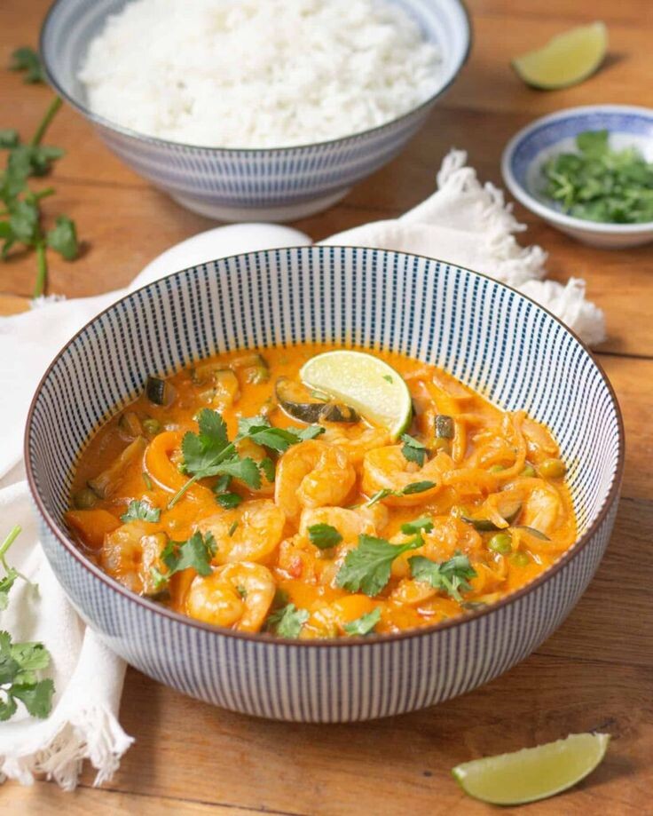 - Карри с креветками (Prawn Curry). Типичное блюдо прибрежных штатов (Керала, Гоа). В соус добавляют кокосовое молоко, что придаёт ему сладковатый, сливочный вкус.