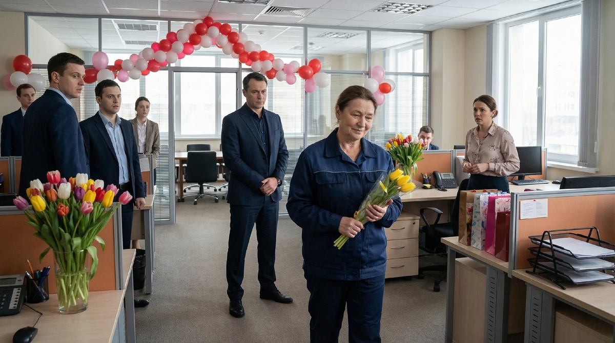 А потом заметила на дальнем конце стола молодую уборщицу из вечерней смены — Наташу. Та держала свой букет обеими руками и смотрела на него так осторожно, будто не верила, что это действительно ей.