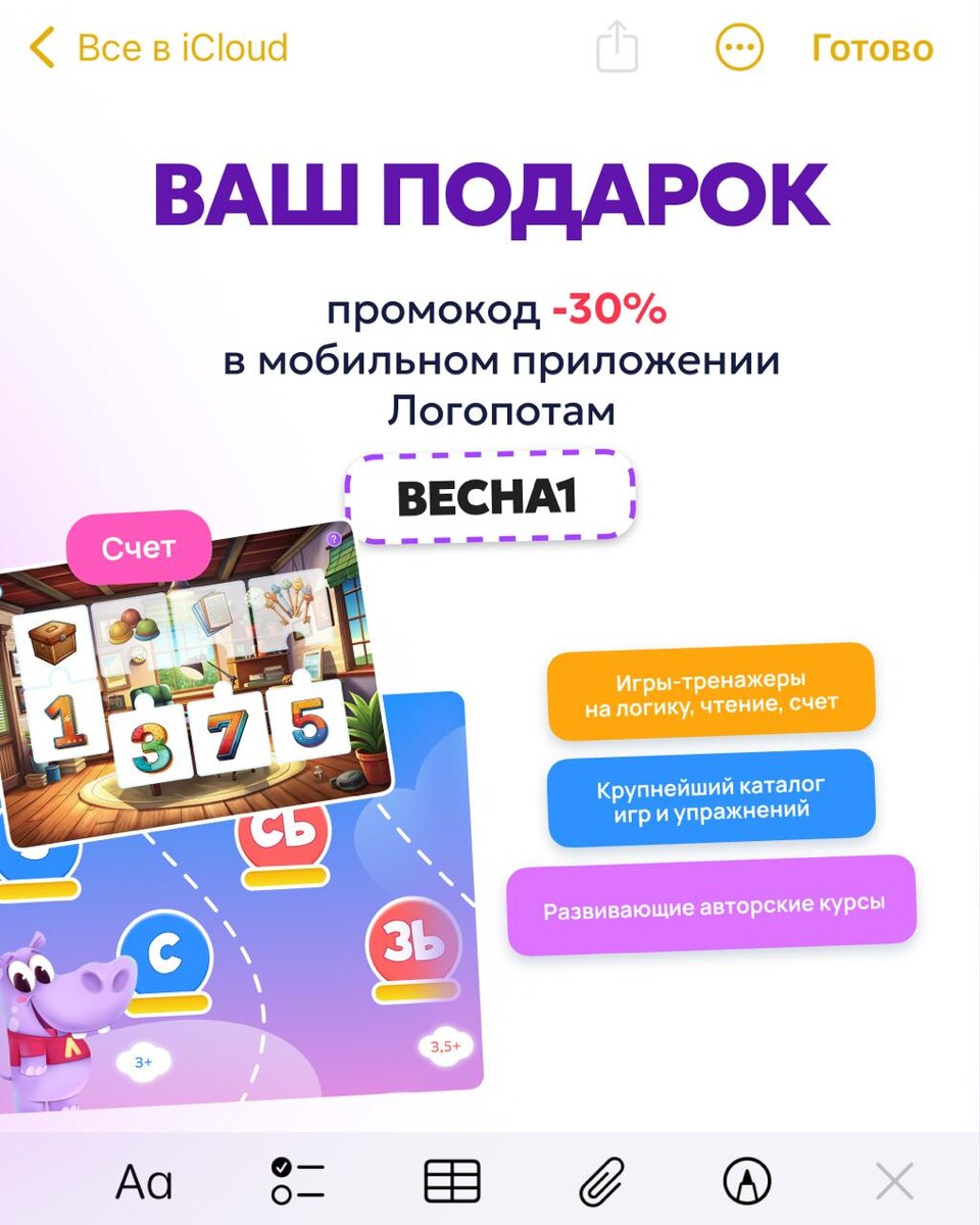 ⬇️ Инструкция: как получить 💝 скидку -30% в мобильном приложении Логопотам на целый год