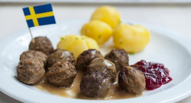 Классическое шведское блюдо. Нежные мясные шарики подают со сливочным соусом и кисло‑сладким брусничным соусом — сочетание, ставшее визитной карточкой скандинавской кухни.